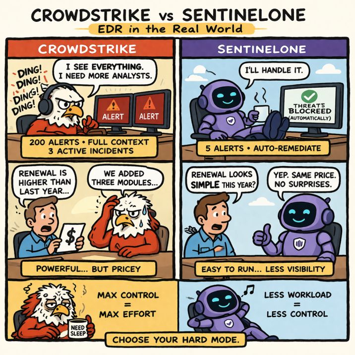 CrowdStrike vs SentinelOne EDR comparison is a decision about how your security team will operate when things get messy. Not during a clean demo. Not during a controlled POC. When alerts pile up, endpoints behave unpredictably, and your team has to respond fast.